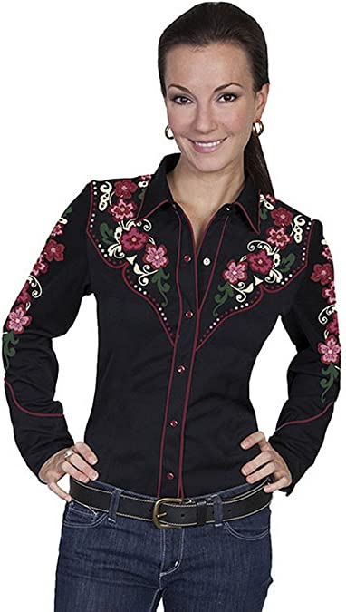 Get into the cowboy spirit with Scully's Western Apparel line. This item, designed with 65% polyester 35% rayon, features western colorful floral embroidery blouse and this colorful blouse is a poly/rayon blend . When it comes to your comfort on the range or other occasions, Scully is your choice.