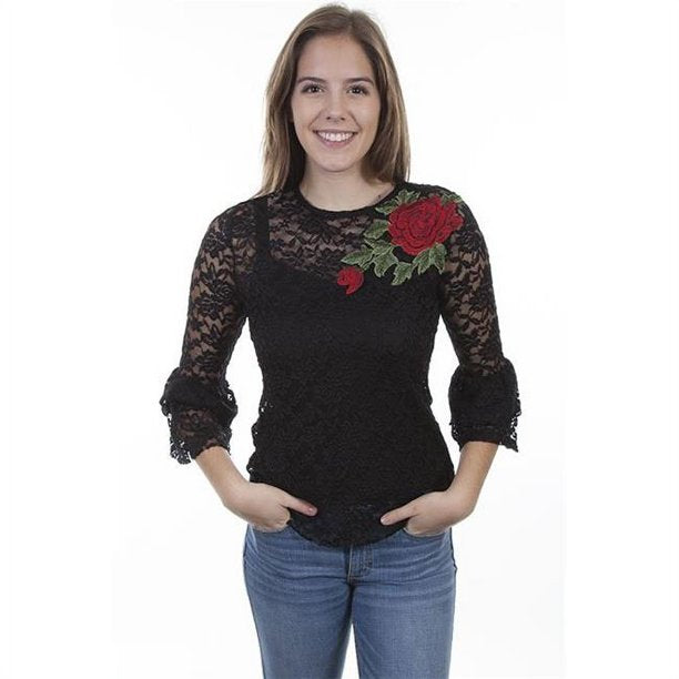 Lace Top Rose Black Shirt