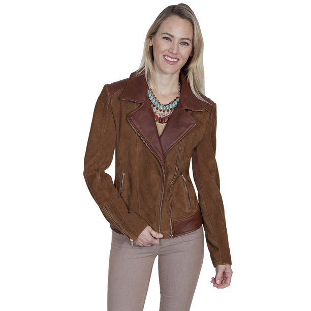 Scully Western Jacket Womens Motorcycle Aztec Beaded Leather Zip L54 Womens Scully Jacket: Womens Scully Western Outerwear. Take a ride! This womens jacket from Scully's Leatherwear collection sets itself apart with its featured Aztec inspired full back bead design on leather. The front features a sumptuous suede, suede sleeves and...