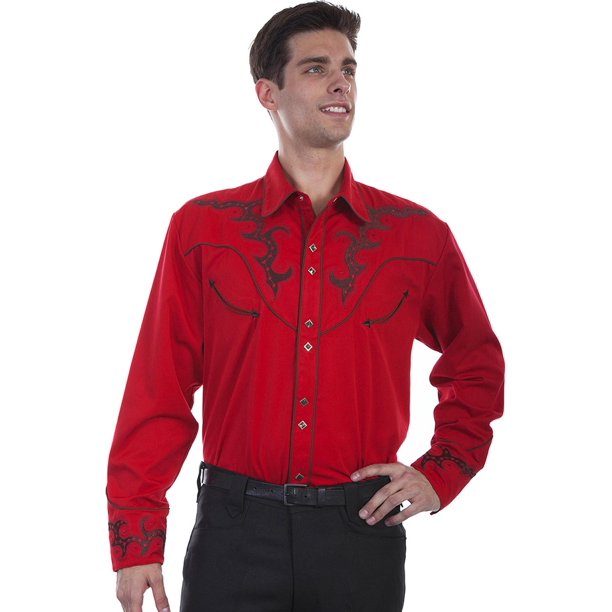 Get ready for a night on the town by wearing this fashionable shirt from Scully. This shirt is made with a polyester blend, has heavily embroidered yokes, a snap-down front, and adjustable snap cuffs. The snaps of this shirt are diamond shaped and add a unique edge to this shirt. Move from the saddle to the dance floor without missing a beat in this shirt from Scully.