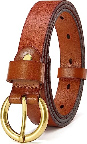 Womens Belts for Jeans, CR Leather Belts for Women, 1" Width Womens Belt with Gold Buckle for Pants