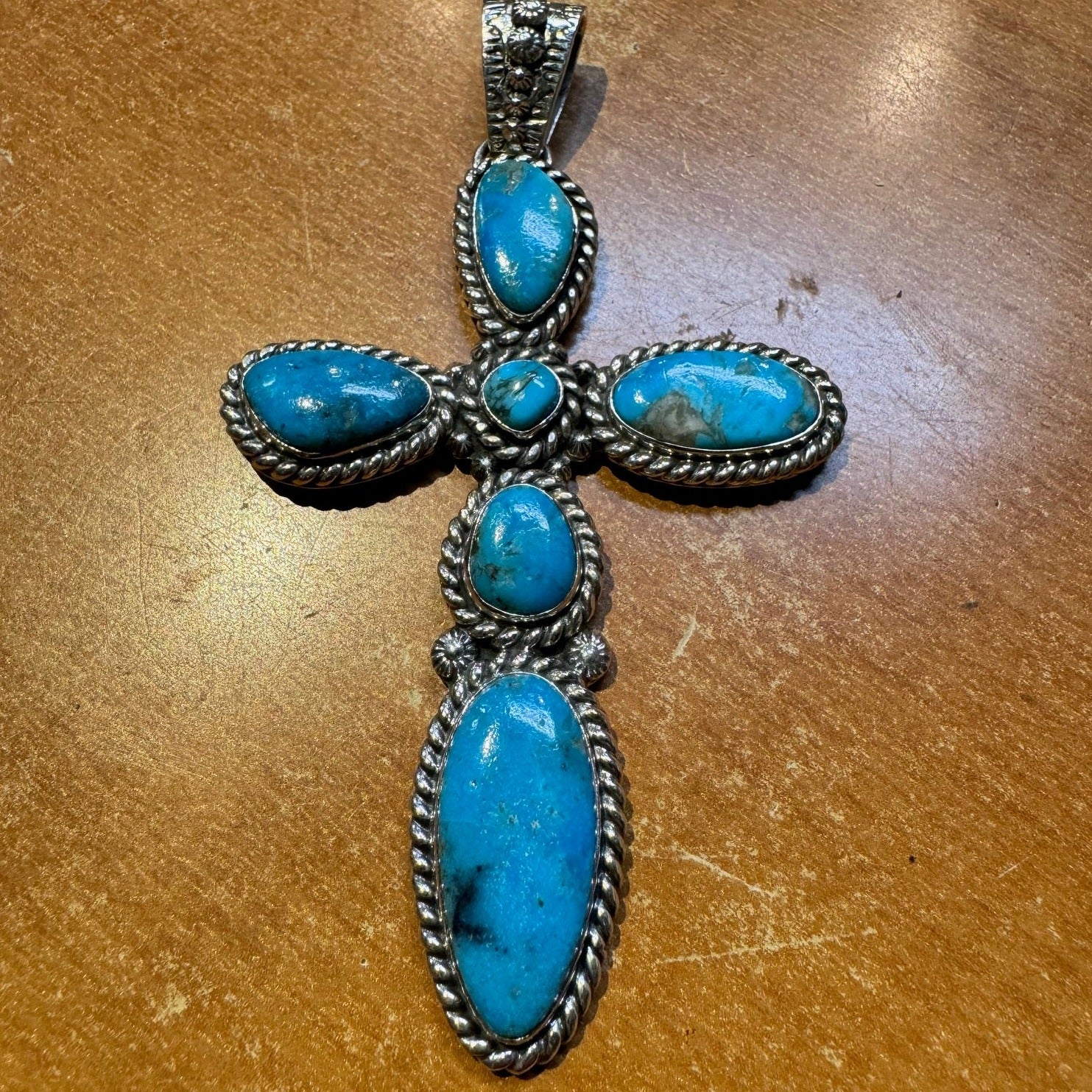 TURQUOISE 4" X 2.5"  SET IN STERLING SILVER COLLECTICLE CROSS DESIGN AND QUALITY. NATIVE DESIGN.