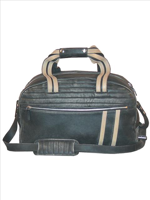 Description: This sporty duffel features a zip closure and leather wrapped handles. It has two exterior full zip pockets, inside organizer and zip pocket. Includes an adjustable shoulder strap. SIZE: 18" X 12" X 8"