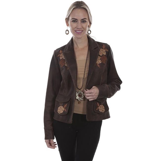 LEATHER ROSE DESIGN EMBROIDERED ON BROWN BACKGROUND. Scully is a top manufacturer of leather goods, including womens leather outerwear. Each piece is hand-crafted to the highest standards from the finest leather, with close attention to detail. This western style outerwear item features full leather and floral embroidery. For the finest...