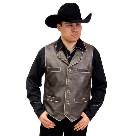 Maybe one of the coolest vests we've ever carried, this Scully charcoal, sanded edge will always be cool and in style. Four pockets in the front, lapel-style opening , supple calf leather and that goes-with-everything grey that stands out anywhere. This vest is next-level cowboy cool. Maybe one of the...
