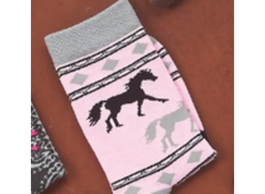Sock Pink/Grey With Blk Horses Kids Socks