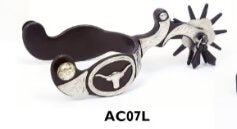Fancy Longhorn Silver / Black Spur by Fashion West AC07L Nice and heavy duty. The silver overlay adds a nice touch, too. Sold as a pair. Width: 3.25"